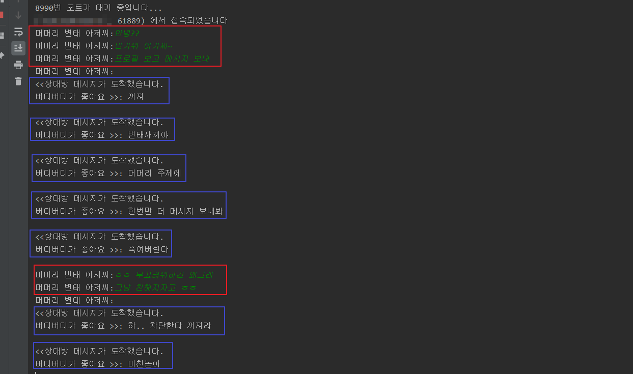 정상적으로 실행이되면 먼저 서버에서 클라이언트로 메시지를 보내보자.