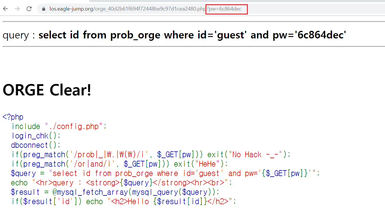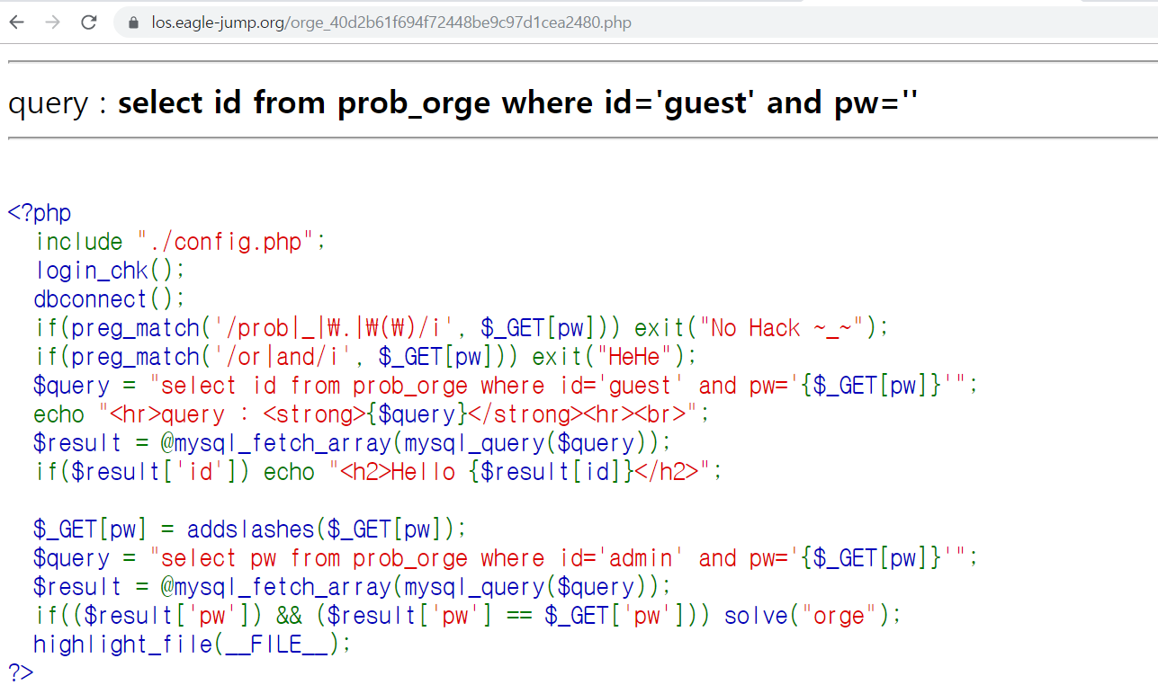지난번에 los4번 문제와 똑같은 문제이다. 여기서는 or,and 연산이 안먹히기 때문에 ||을 이용하여 코드를 작성하겠다.