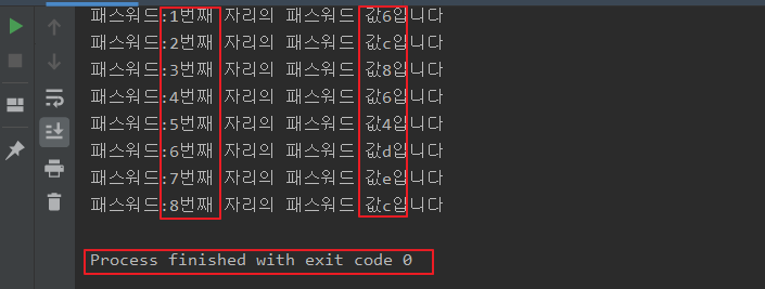 두번째 for문은 N번째 패스워드 값을 구하기 위함이다.