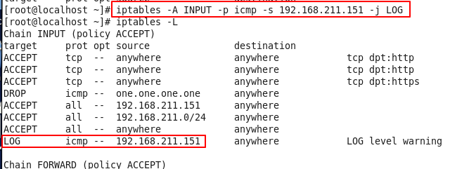 iptables -A INPUT -p icmp -s [ip주소] -j LOG
