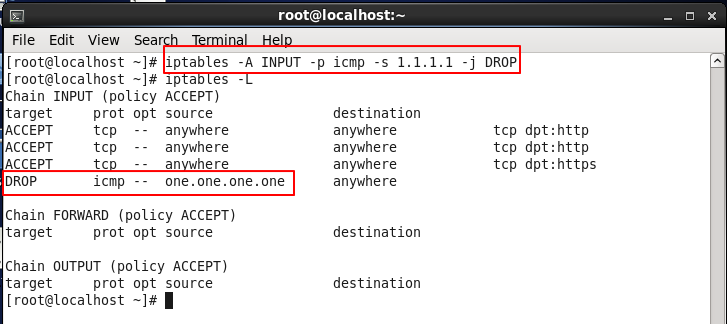 iptables -A INPUT -p icmp -s 1.1.1.1 -j DROP