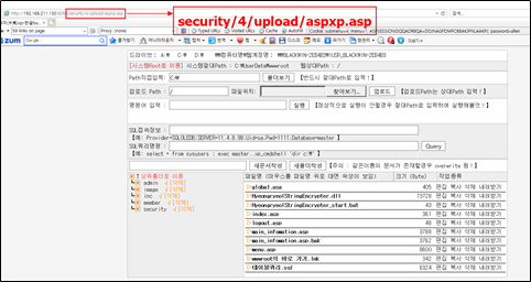 URL주소에 해당 노출된 파일업로드 경로와 .ASP파일(악성 쉘 코드) 이름을 넣어서 접속한 결과 해당 서버의 모든 디렉토리 파일을 볼 수 있음을 알 수 있음