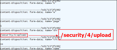 프록시 툴(Burp suite, Fiddler)로 요청값으로 파일업로드 패킷을 잡아 해당 업로드 경로가 있는지 찾아본 결과 /security/4/upload/라는 파일경로가 잡힌것을 알 수 있음.