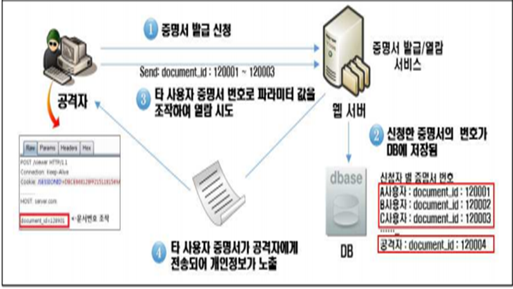 파라미터 값을 변조하여 사용자의 민감한 정보 및